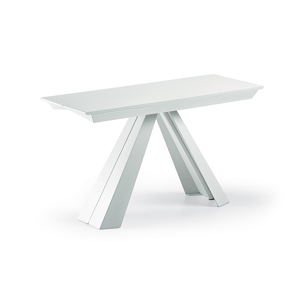 La base della consolle allungabile di design Convivium è realizzata in acciaio verniciato, disponibile in diverse colorazioni per adattarsi a ogni stile d’arredo.