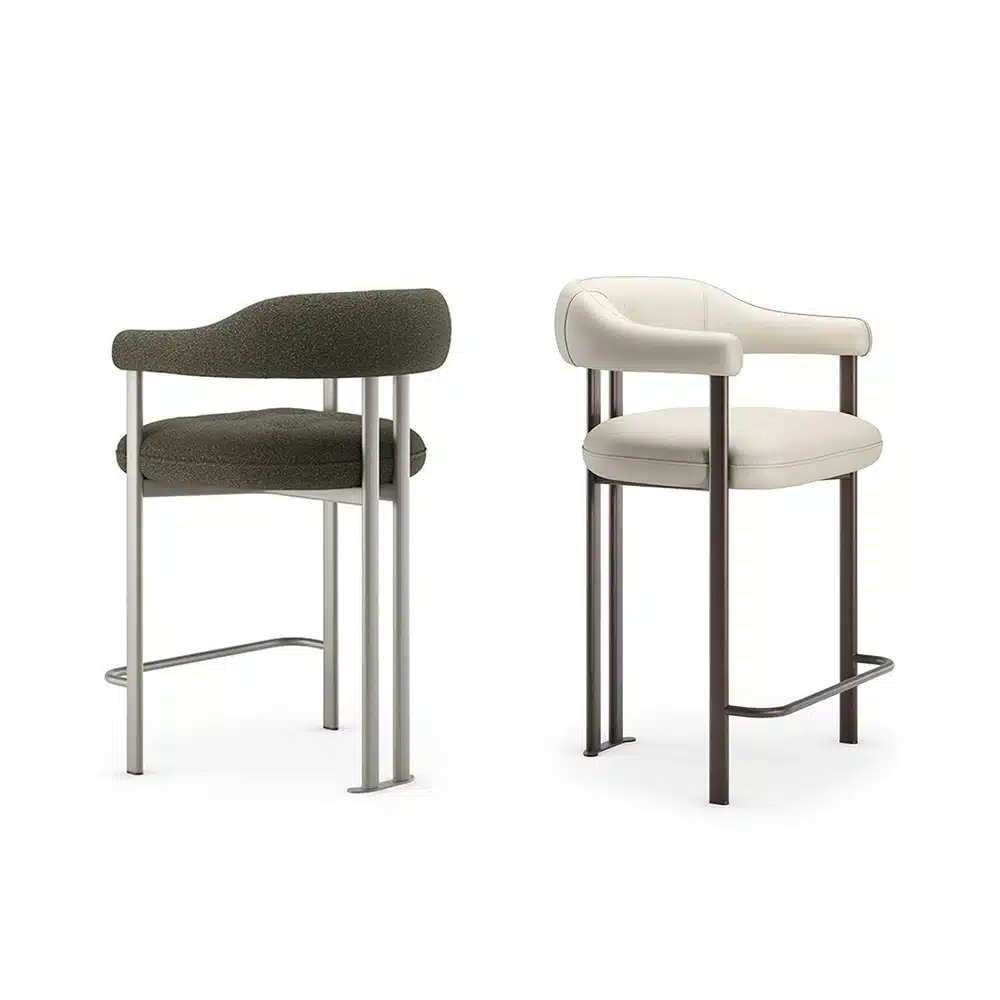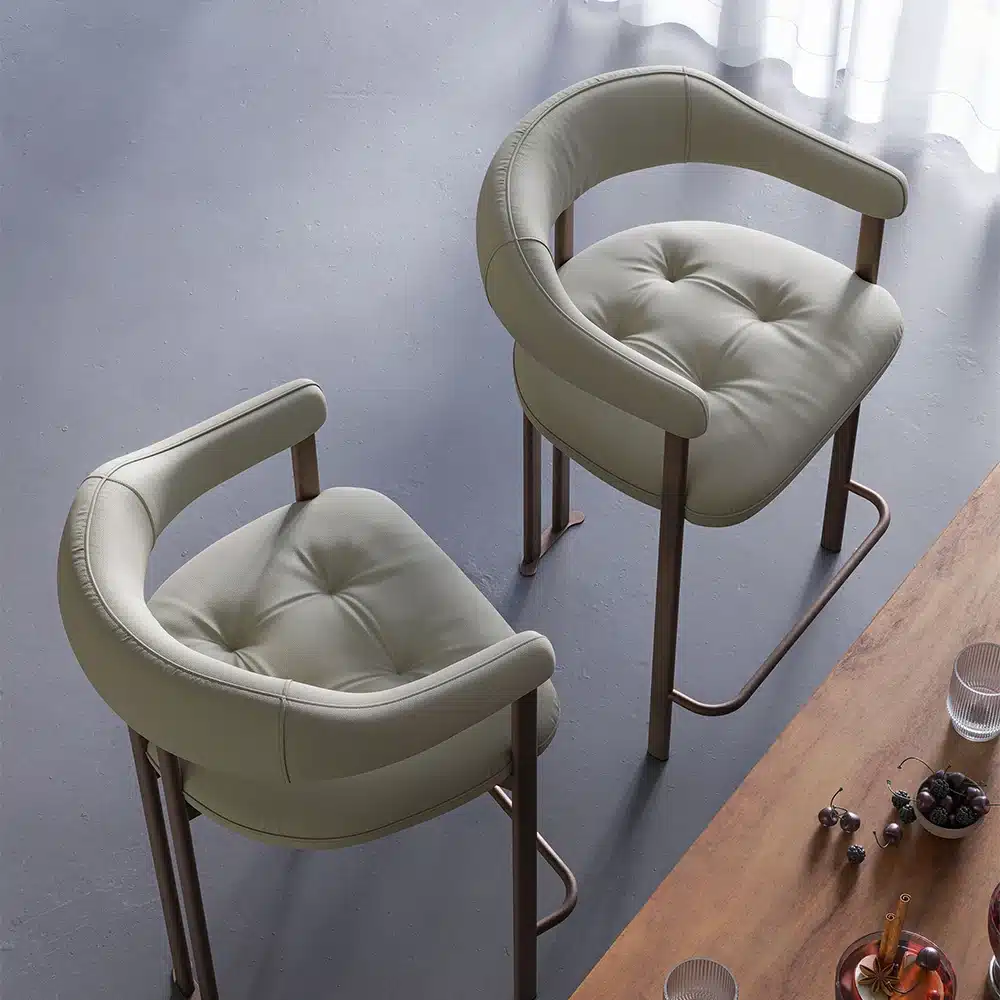 Lo sgabello design Greta è rivestibile in pelle naturale, eco-pelle o tessuto di qualità. Ogni materiale è selezionato per resistere all’uso quotidiano e valorizzare l’estetica dell’ambiente. Contattaci per scoprire il campionario completo e ordinare lo sgabello nella versione ideale.