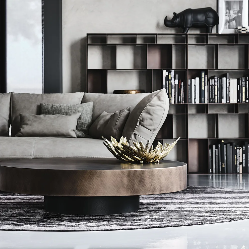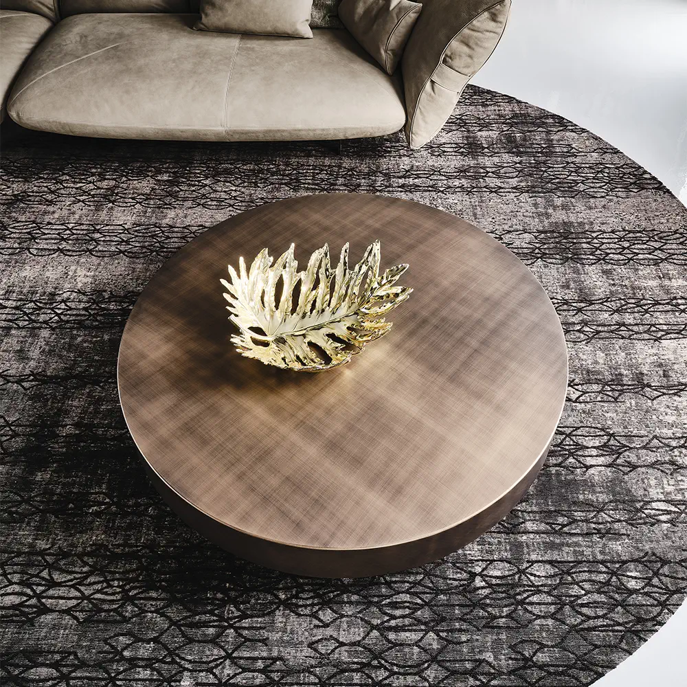 Il tavolino da salotto rotondo design moderno Arena diventa protagonista dell’ambiente.