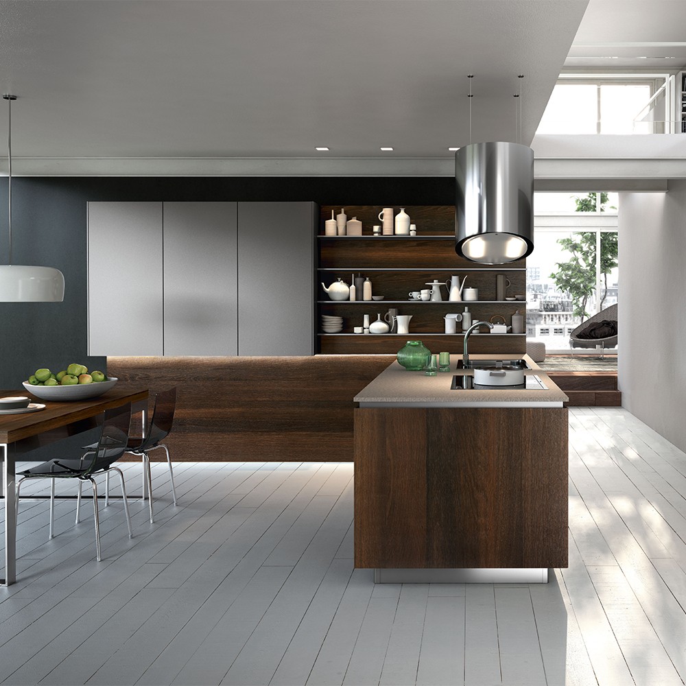 Le cucine con penisola Way sono un progetto caratterizzato da rigorose proporzioni, linee compositive minimali e cromatismi e finiture sofisticate. Si presenta come un’idea di cucina innovativa, che si rivolge ad un cliente sempre più consapevole delle proprie scelte di abitare.