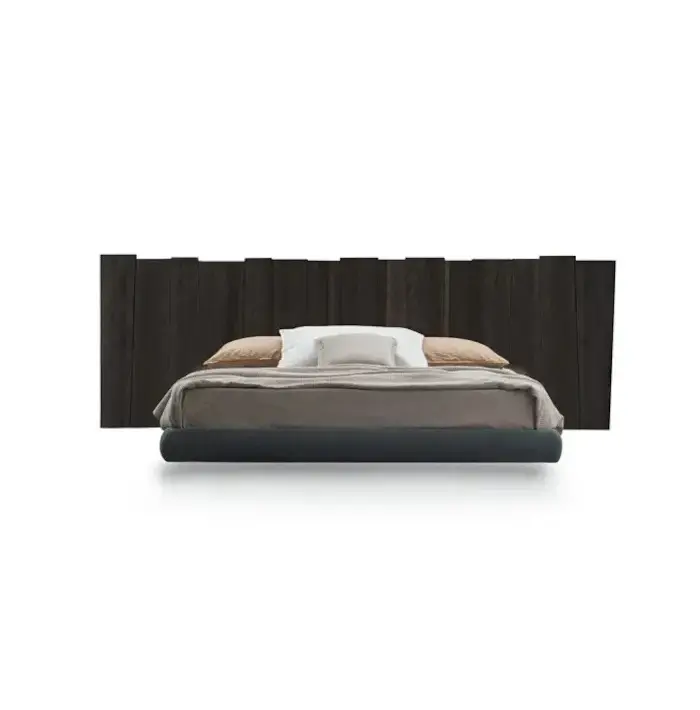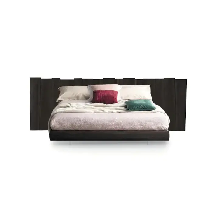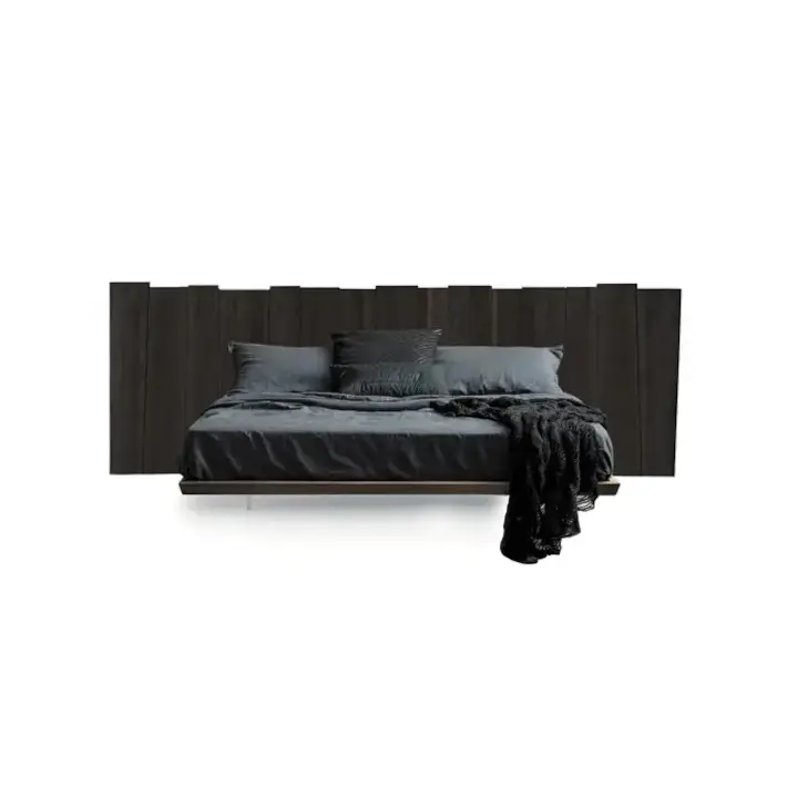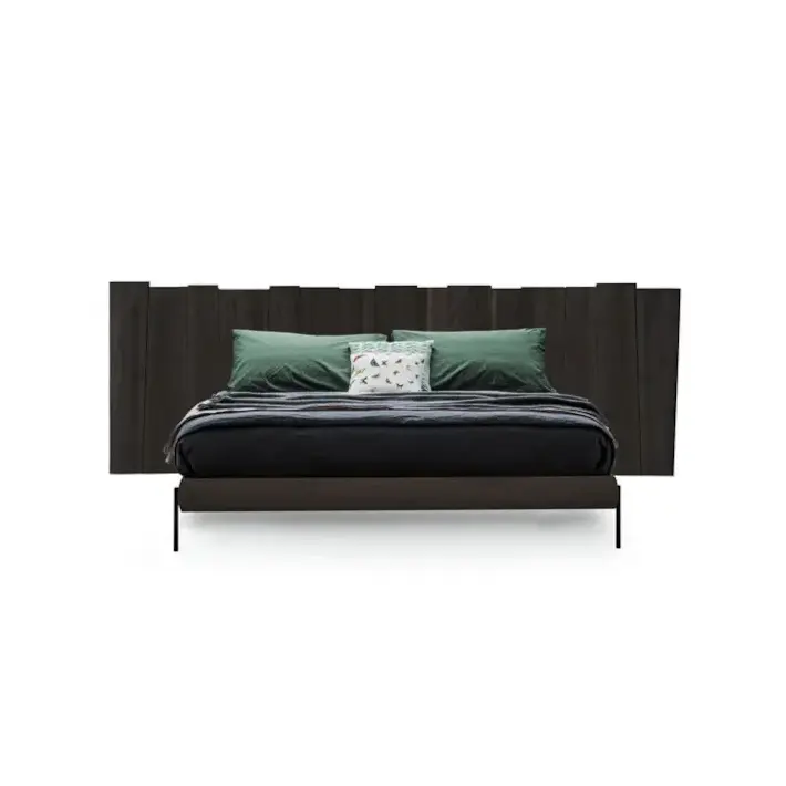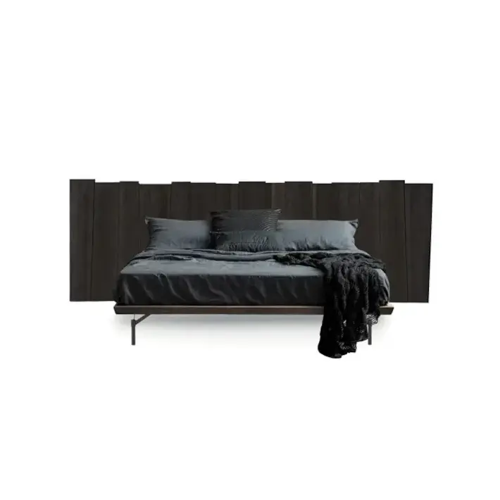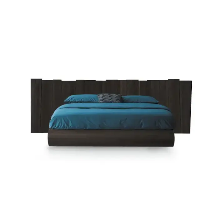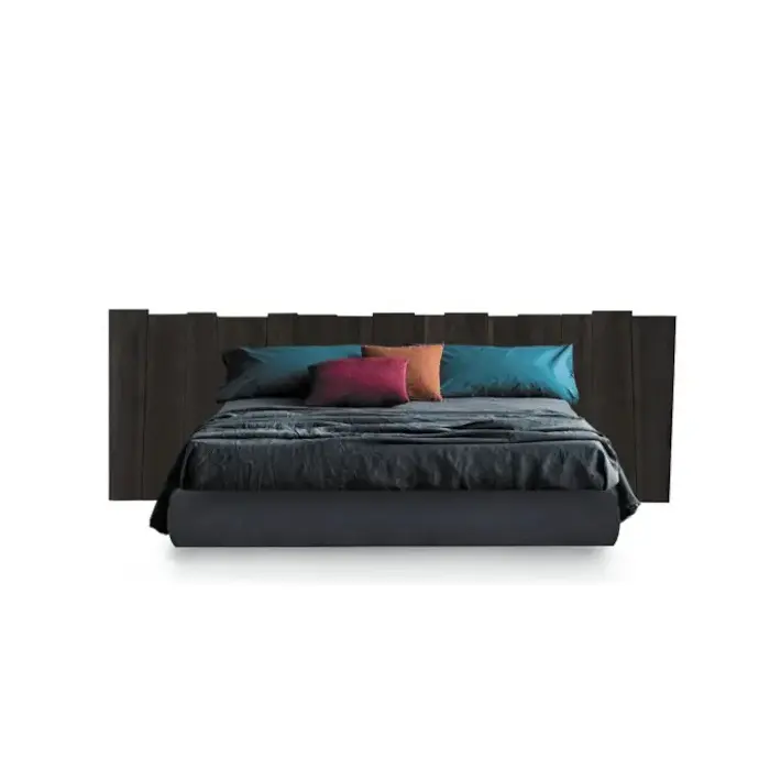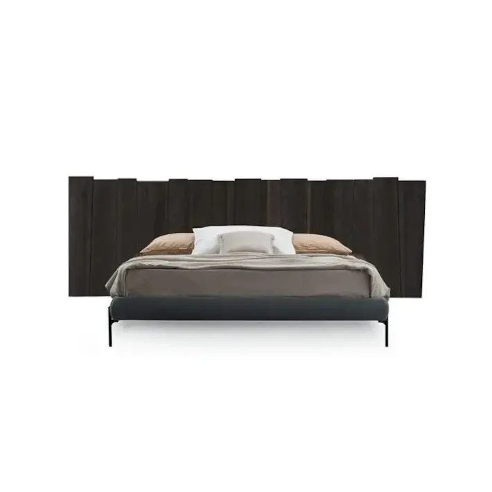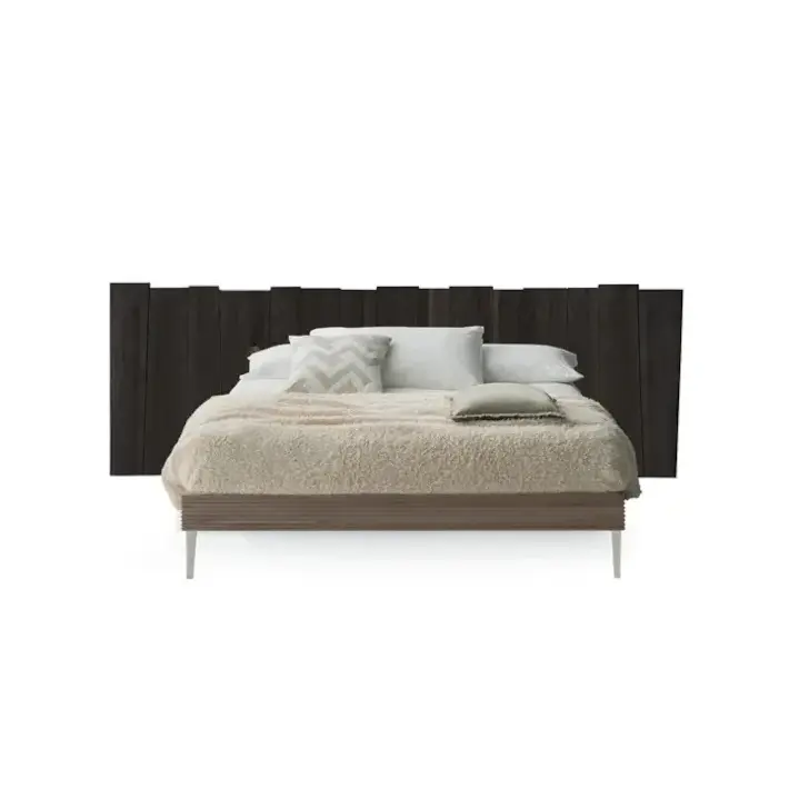 La testata del letto è realizzata in legno massello, lavorato per valorizzare le venature naturali.