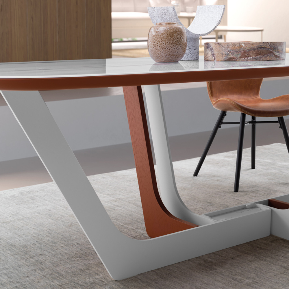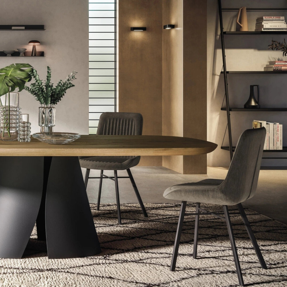 Grazie alla combinazione di materiali, diventa il protagonista della sala da pranzo.