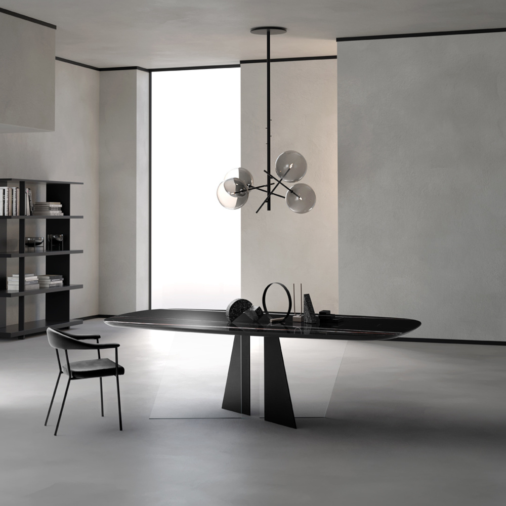 Da Sforza Arredamenti puoi ammirare da vicino il tavolo pranzo effetto marmo Cosmopolitan My Glass di Devina Nais.