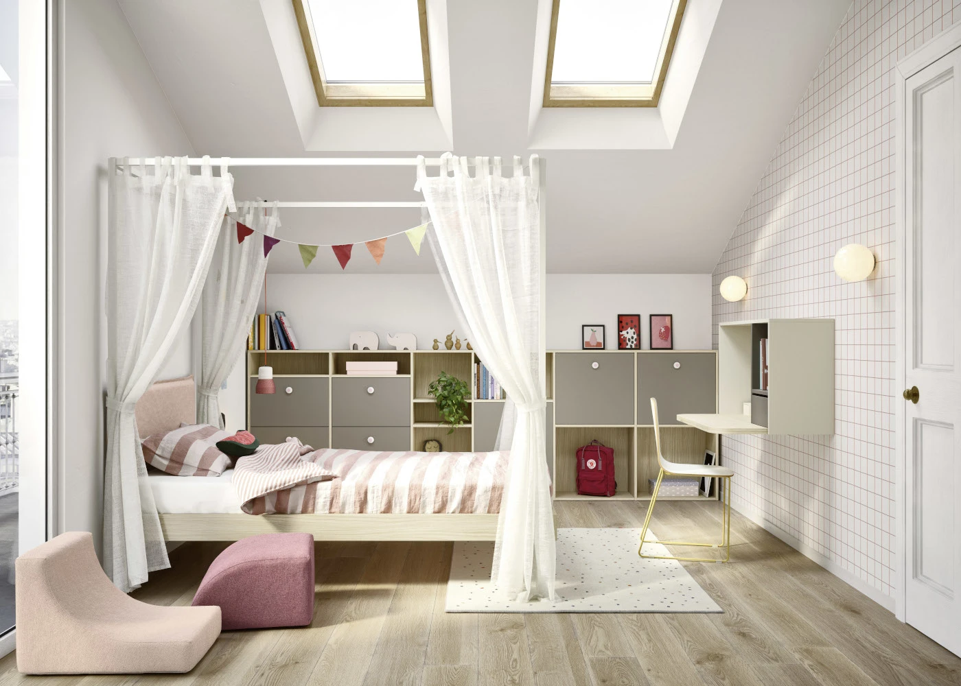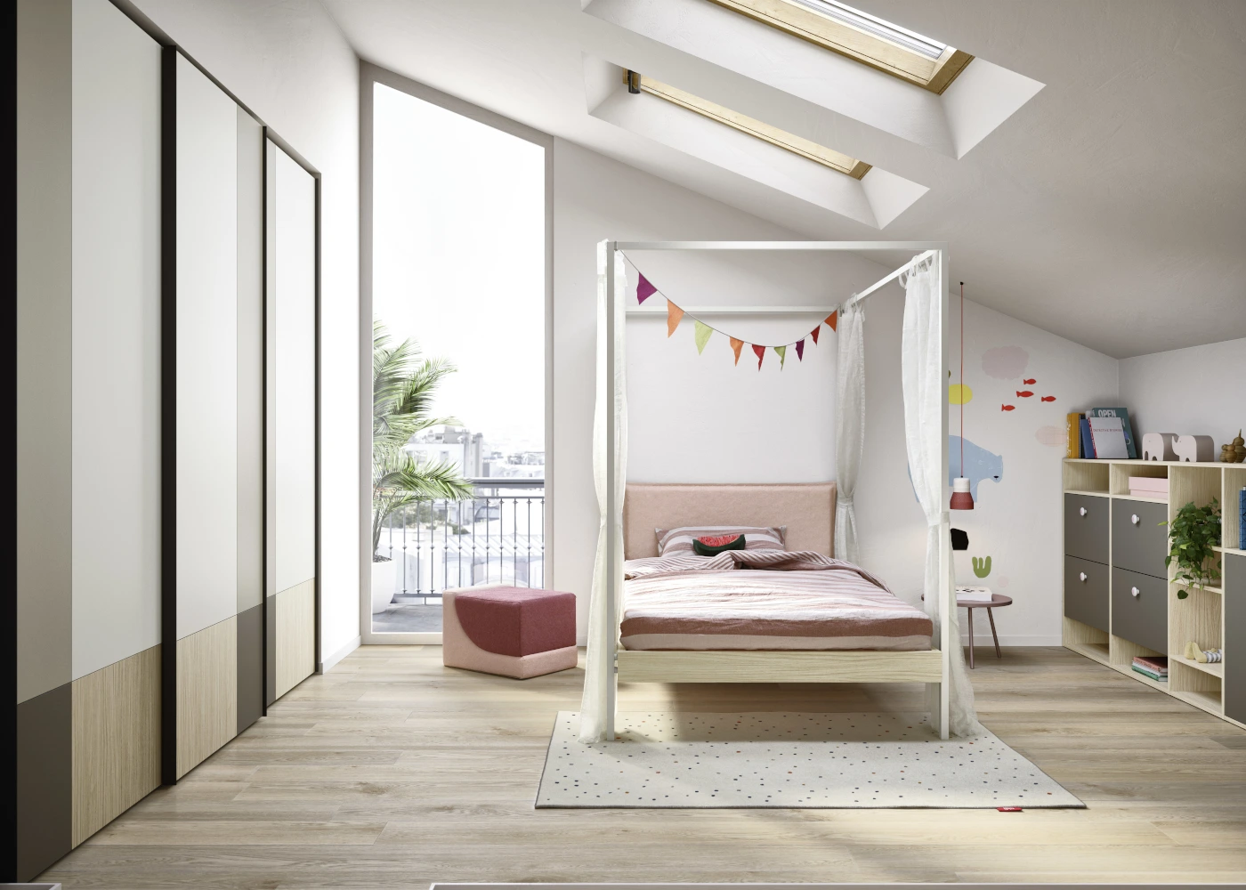 Scegliere una cameretta moderna con letto a baldacchino significa regalare ai bambini e ragazzi uno spazio che cresca con loro, capace di coniugare comfort, praticità e stile contemporaneo.