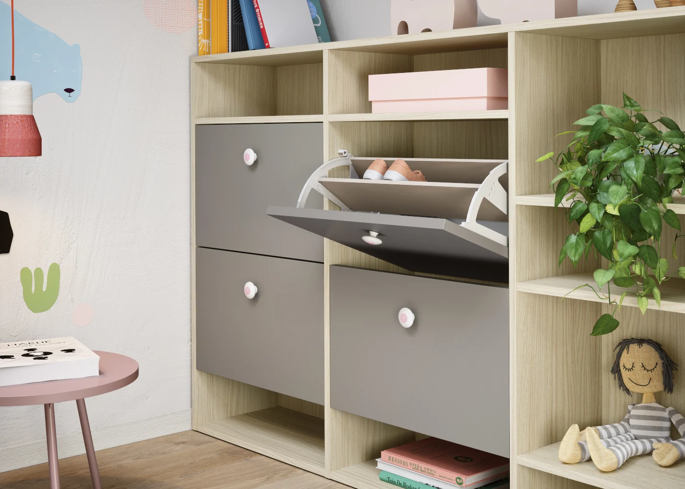 Una soluzione pratica, salvaspazio e dal design ricercato, che permette di mantenere in ordine vestiti, giochi e accessori senza rinunciare all’estetica.