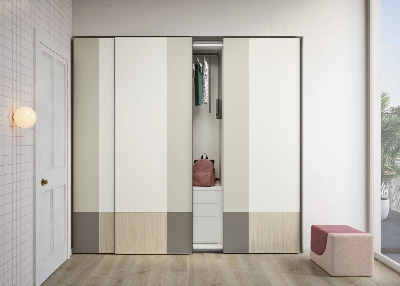 Ogni cameretta ha bisogno di spazi ben organizzati, e l’armadio scorrevole modello Lila risponde perfettamente a questa esigenza.