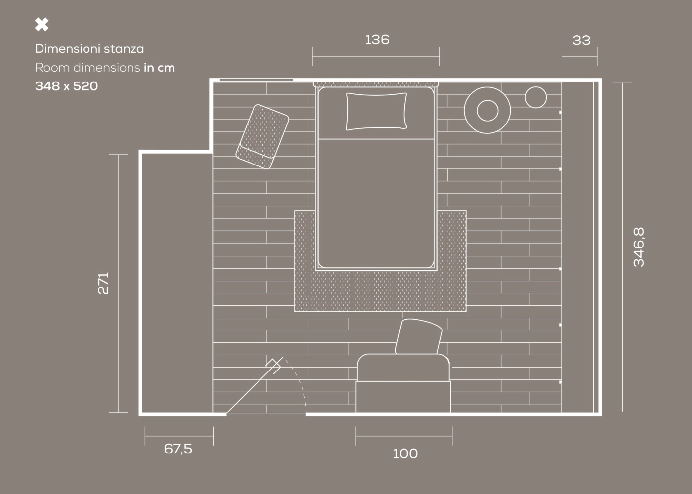 altezza 111,5 cm lunghezza 346,8 cm 33 cm