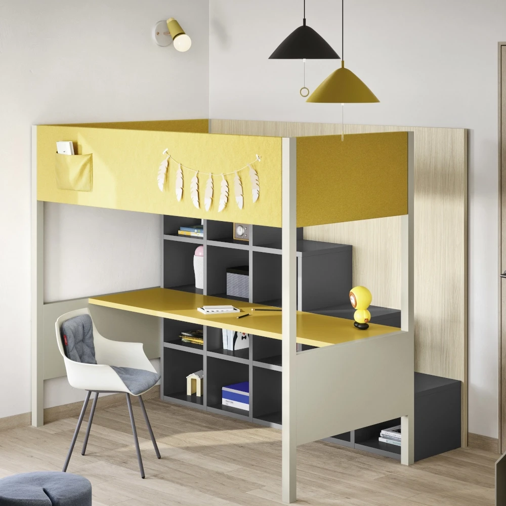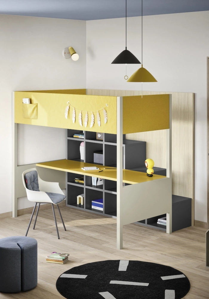 Se cerchi una soluzione che unisca riposo, studio e contenimento in un unico arredo, vieni a scoprire il letto a castello con scrittoio Camelot di Nidi da Sforza Arredamenti. Potrai personalizzare la cameretta secondo le tue esigenze e garantire ai tuoi figli uno spazio bello, funzionale e sicuro.
