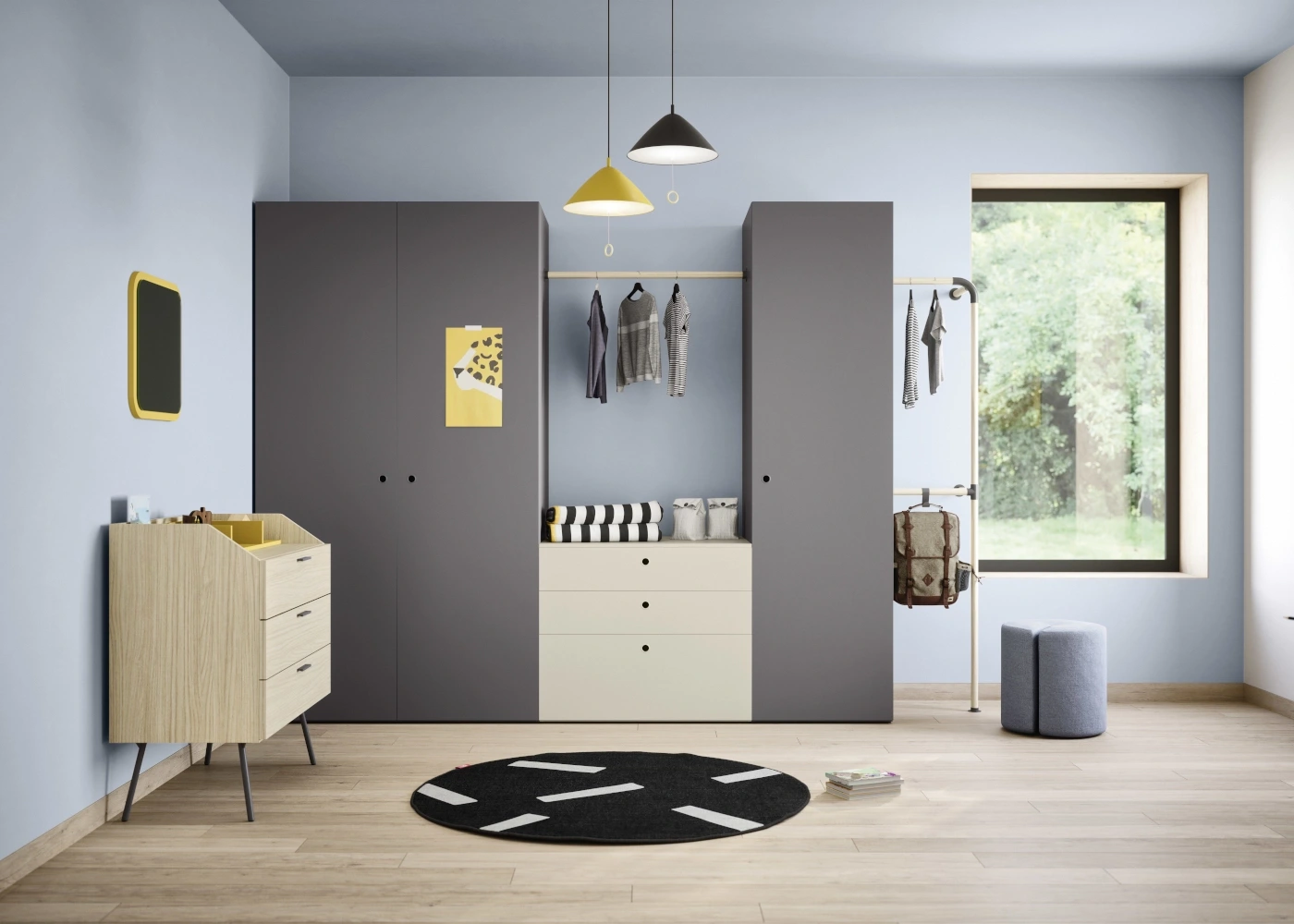 2. Comò Wilson, dal design compatto e con piedini in metallo, studiato per l’autonomia dei bambini.
