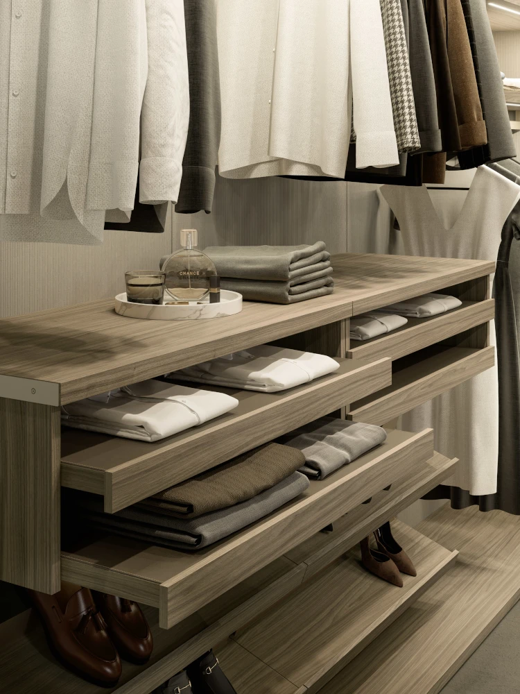 Ripiani, cassetti, tubi appendiabiti e vani sono studiati per ogni esigenza.
