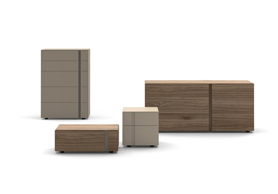 • Comodini bassi o alti, disponibili con uno, due o tre cassetti.