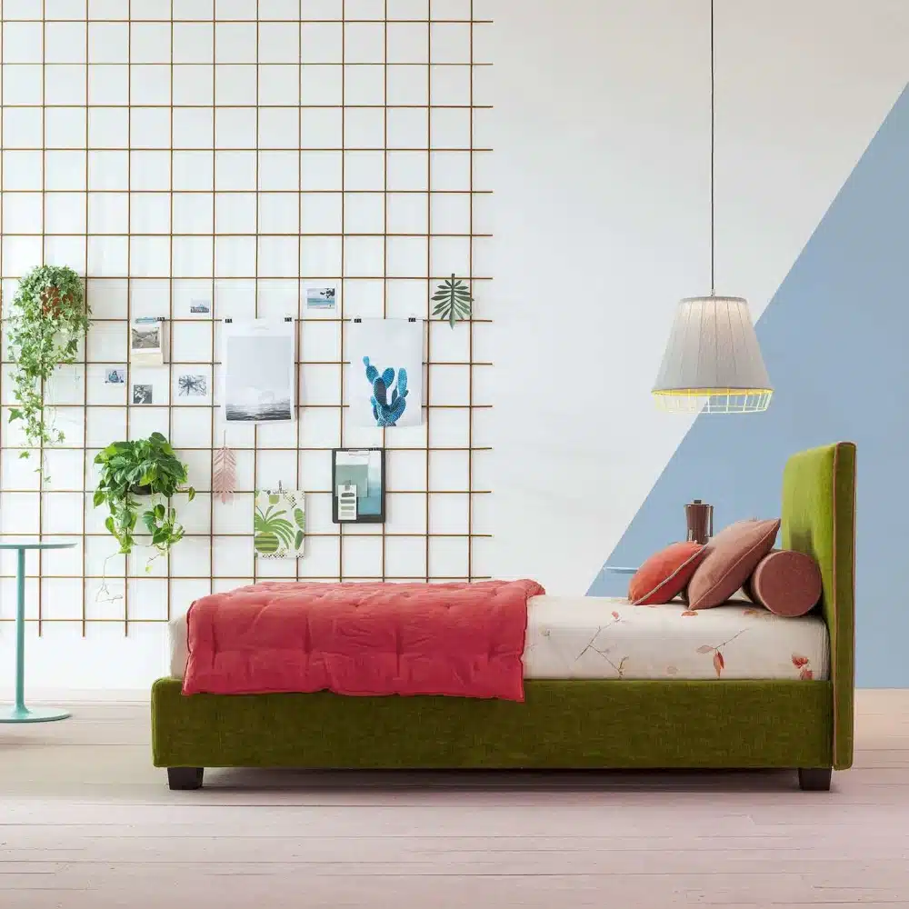 Se desideri ottimizzare ogni centimetro della tua camera, puoi scegliere il letto una piazza-mezza imbottito con contenitore. Questa opzione trasforma il tuo Dread in un pratico armadio orizzontale. Di conseguenza, avrai molto spazio extra per riporre coperte, cuscini e il cambio stagione in modo ordinato.