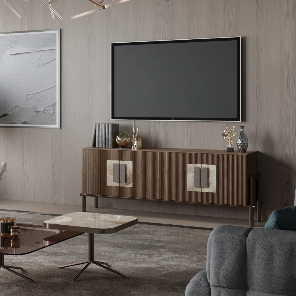 Stai cercando una madia moderna che unisca stile, qualità e funzionalità? La madia con ante cannettate e dettagli in ceramica modello Lena di Zamagna Italia è la risposta giusta. Un mobile soggiorno capace di trasformare ogni parete living in un punto focale elegante e contemporaneo.