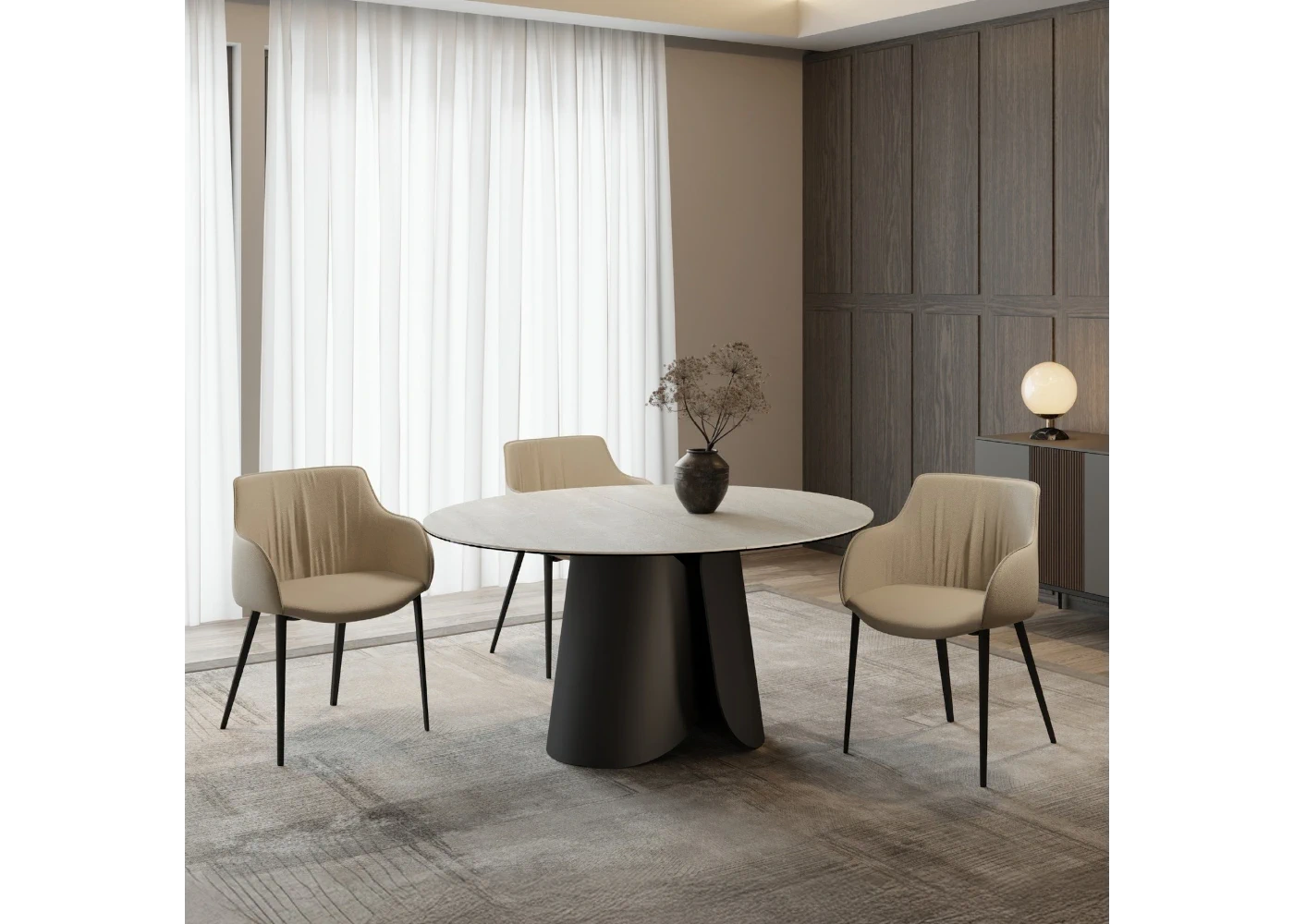 Scegliere un tavolo tondo in ceramica significa favorire convivialità, equilibrio e comfort visivo.